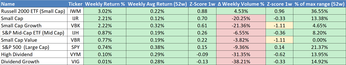 Risk on: small caps outperformed, but the rally isn’t confirmed by volume.