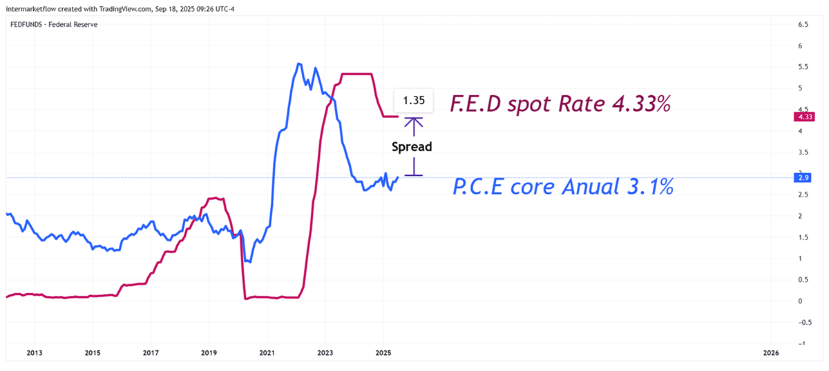 The Spot federal rate spread vs. PCE inflation rate will determine the dollar’s path in the short and medium term. Here we break down the capital flows of the week, the Fed’s actual situation, today’s market expectations, the budget constraint set by the PCE and the concrete technical setup we are working on.