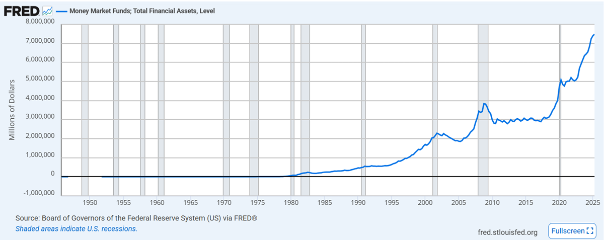 Now, let’s move to the liquidity bucket — the one where banks, funds, pensions, and primary dealers park their excess cash in exchange for a rate set by the Fed. This bucket is the Reverse Repo market.